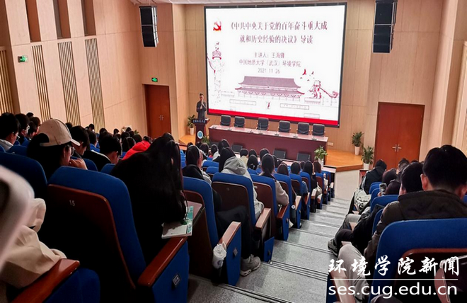 他从对党的历史是否了解、对国家所处的历史方位是否了解、党和国家的发展与个人发展之间的关系等问题引入,带领同学们一起学习了党的十九届六中全会通过的《中共中央关于党的百年奋斗重大成就和历史经验的决议》。讲述了中国共产党自一九二一年成立以来,党领导人民浴血奋战、百折不挠,夺取新民主主义革命伟大胜利、完成社会主义革命和推进社会主义建设、进行改革开放和社会主义现代化建设、开创中国特色社会主义新时代的建党百年恢弘史诗。