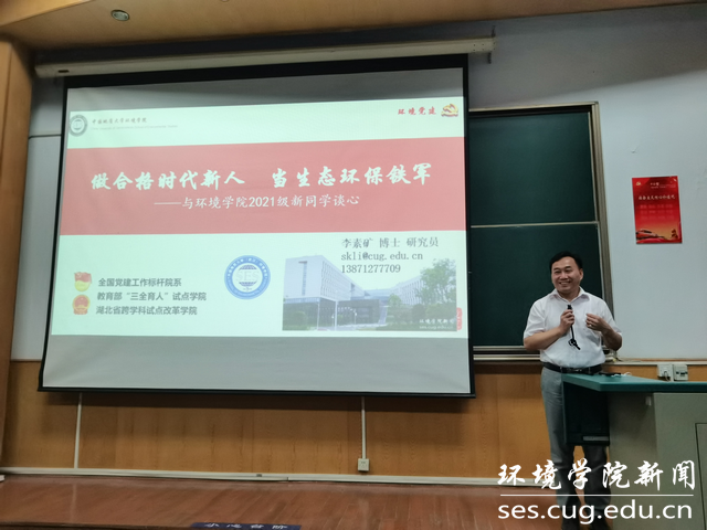 2021级本科新生入学教育系列活动在南望山校区教一楼第二阶梯教室举行。学院党委书记李素矿以“做合格时代新人 当生态环保铁军”为题讲党课。2021级辅导员陈俊男及全体本科新生270余人参加。