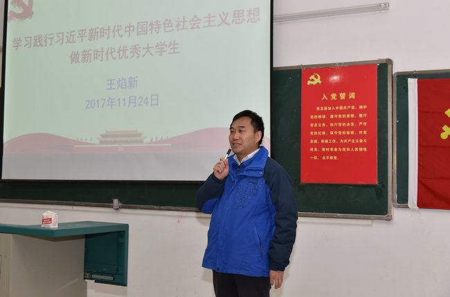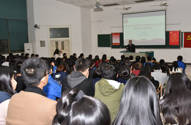 张学海 孟国强)2017年11月24日晚在化学楼一层阶梯教室,王焰新校长以“学习践行习近平新时代中国特色社会主义思想,做新时代优秀大学生”为题讲党课。日本av片