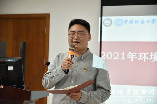 地下水专业大学生党支部书记贺沁文主持学习交流活动。