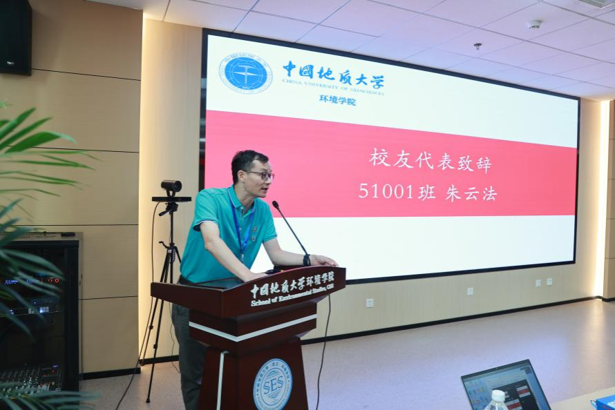 校友代表,51001班朱云法、51002班陈满、53001班王伟、53002班曾宪东依次发言,感谢学校、学院对于本次校友值年返校活动的精心安排,深情诉说校友们求学生涯的点点滴滴,在“艰苦朴素、求真务实”的校训精神引导下,校友们不断为祖国水工环事业发展贡献自己的力量。校友们表示为学院二十余年来取得的发展感到骄傲,并向学院捐赠学院文化石,共同祝福学院越办越好,事业蒸蒸日上。