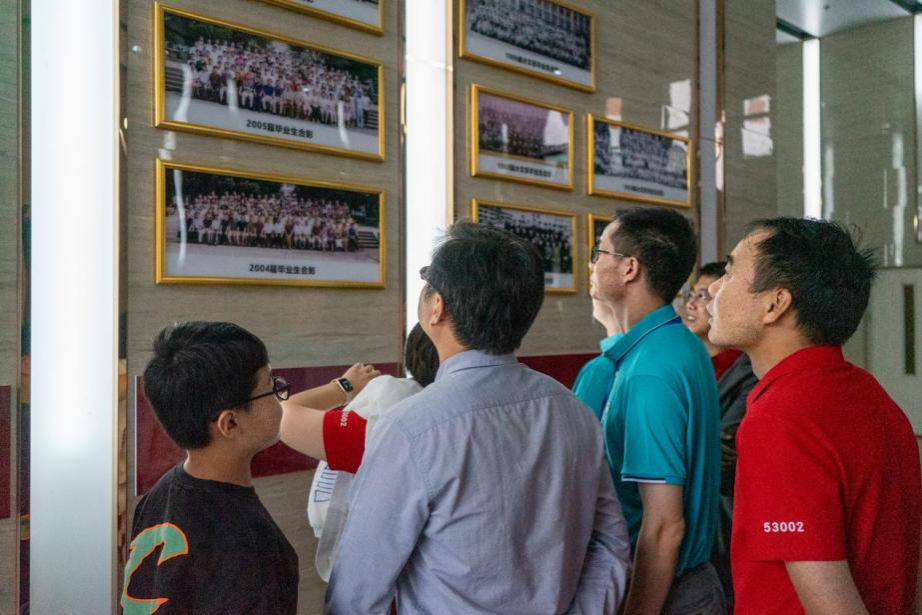 校友们及家属参观未来城校区与学院文化墙,感受学院新址优良的办公、科研、生活环境,体会学校、学院近年来事业蓬勃发展。