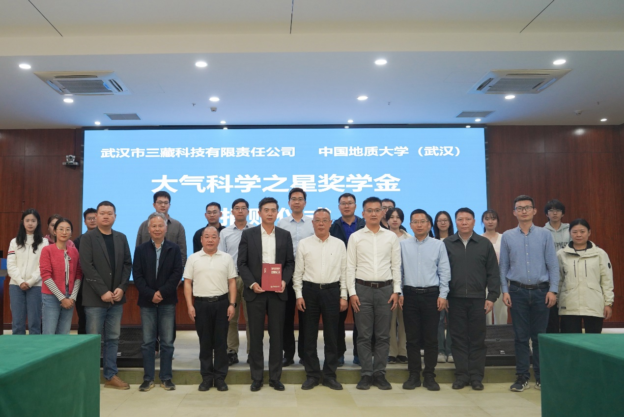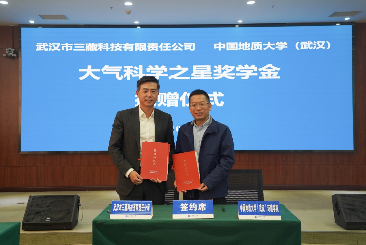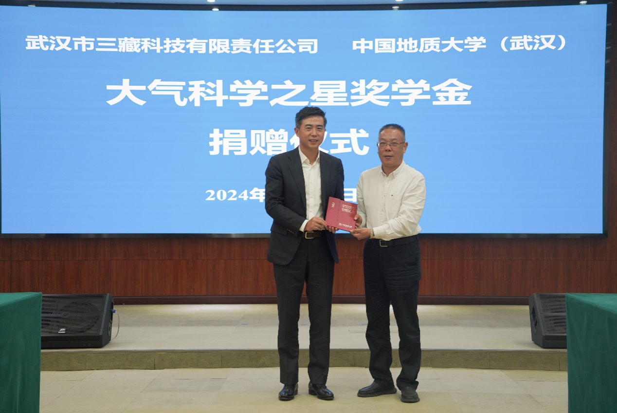 捐赠大气科学之星奖学金。三藏科技董事长童甫,首席运营官宋光宇和行政人力总监张艳,日本av片av
