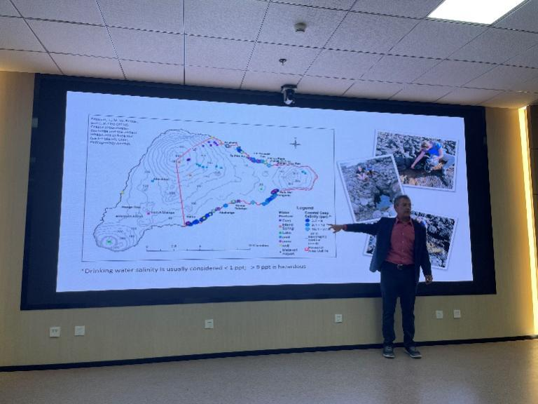 Becker教授以太平洋岛屿中的拉帕努伊岛为案例,分析了地下水在南太平洋岛屿的径流途径和环境作用,阐明地下水如何帮助珊瑚礁在营养沙漠中茁壮生长,以及它在陆地动植物中的作用,展示了环礁地下水影响珊瑚礁健康的关键化学途径。作为南太平洋岛屿重要的淡水资源,地下水对岛民的生活和生态系统有重要影响。环礁上没有地表径流,也没有显露的地下水排放,地下水却可能通过渗透和流动为珊瑚礁提供营养(如硝酸盐等),这是珊瑚礁生态系统健康的关键因素。岛屿的地形和珊瑚礁的结构影响地下水流动,不同类型的岛屿地下水流动模式不同,会形成不同的地下水化学条件,从而改变珊瑚礁的营养循环。通过长期的地下水监测(水温、电导率、放射性同位素等指标),明确地下水氧化还原条件,开展不同类型岛屿的地下水流动和营养循环研究,可为研究者更好地了解水文地质系统及其与太平洋岛屿周围海洋生物的相互作用提供思路。