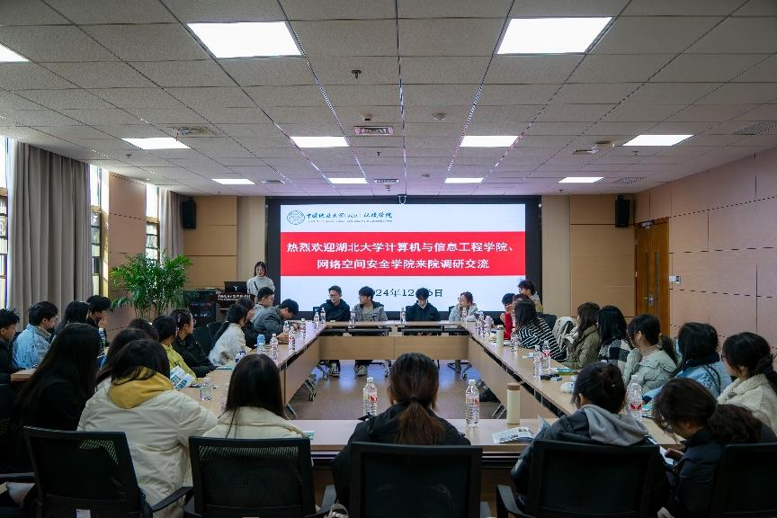 姜明敏对湖北大学计算机与信息工程学院、网络空间安全学院来访表示热烈欢迎并介绍学院党建“双创”工作。他提到,学院党委深入学习领会习近平总书记关于党的建设的重要思想,把握丰富内涵和精神实质,落实立德树人根本任务,肩负起新时代基层育人组织的历史使命和责任担当。他详细介绍学院党建“双创”工作的具体探索和实践,并表示要紧扣质量党建的时代命题,扎实推进“一融双高”。希望通过“请进门、走出去”,相互传经送宝,共同促进党建工作提质增效。