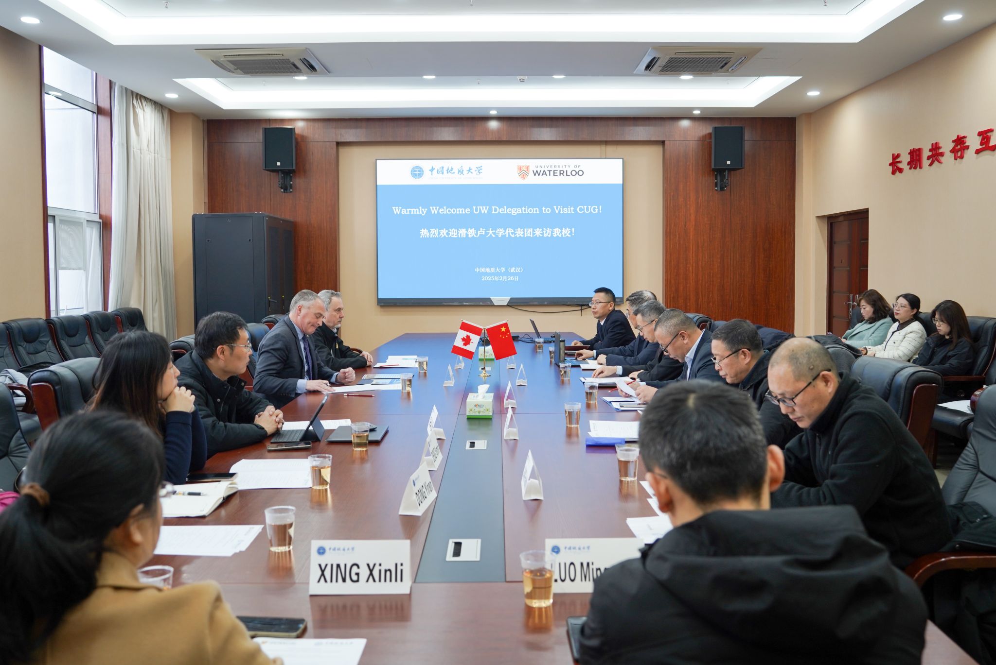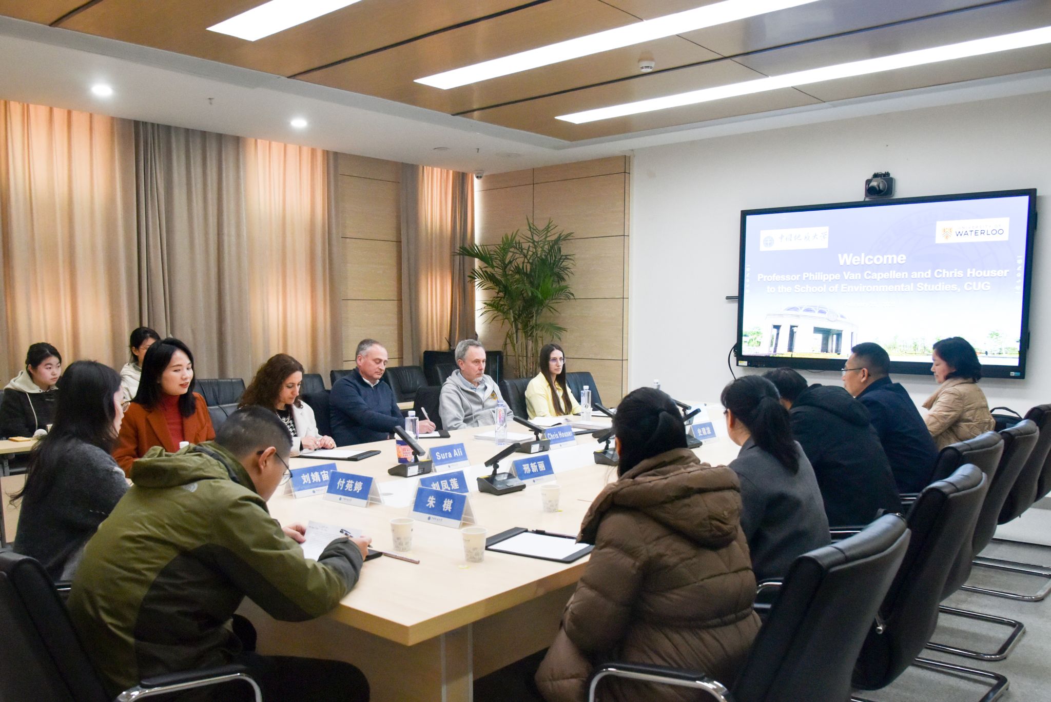 负责人介绍了学院的学科建设、人才培养、师资队伍等方面的情况,并重点分享了在环境科学、生物学、水利工程等领域的教学实践与科研成果。Chris Houser教授介绍了滑铁卢大学理学院的学科优势和特色专业,并就双方在人才培养模式、课程设置、学生交流等方面的合作进行了深入讨论。双方围绕如何共同培养具有国际视野和创新能力的高素质人才展开热烈交流,提出了一系列富有建设性的合作设想。