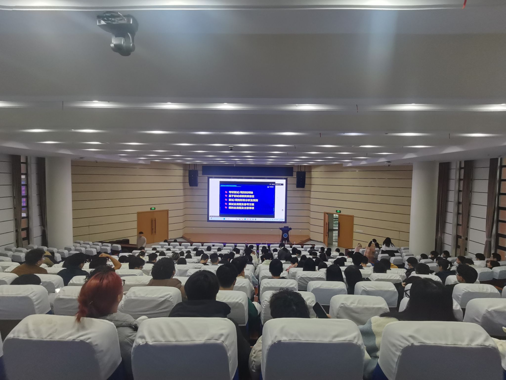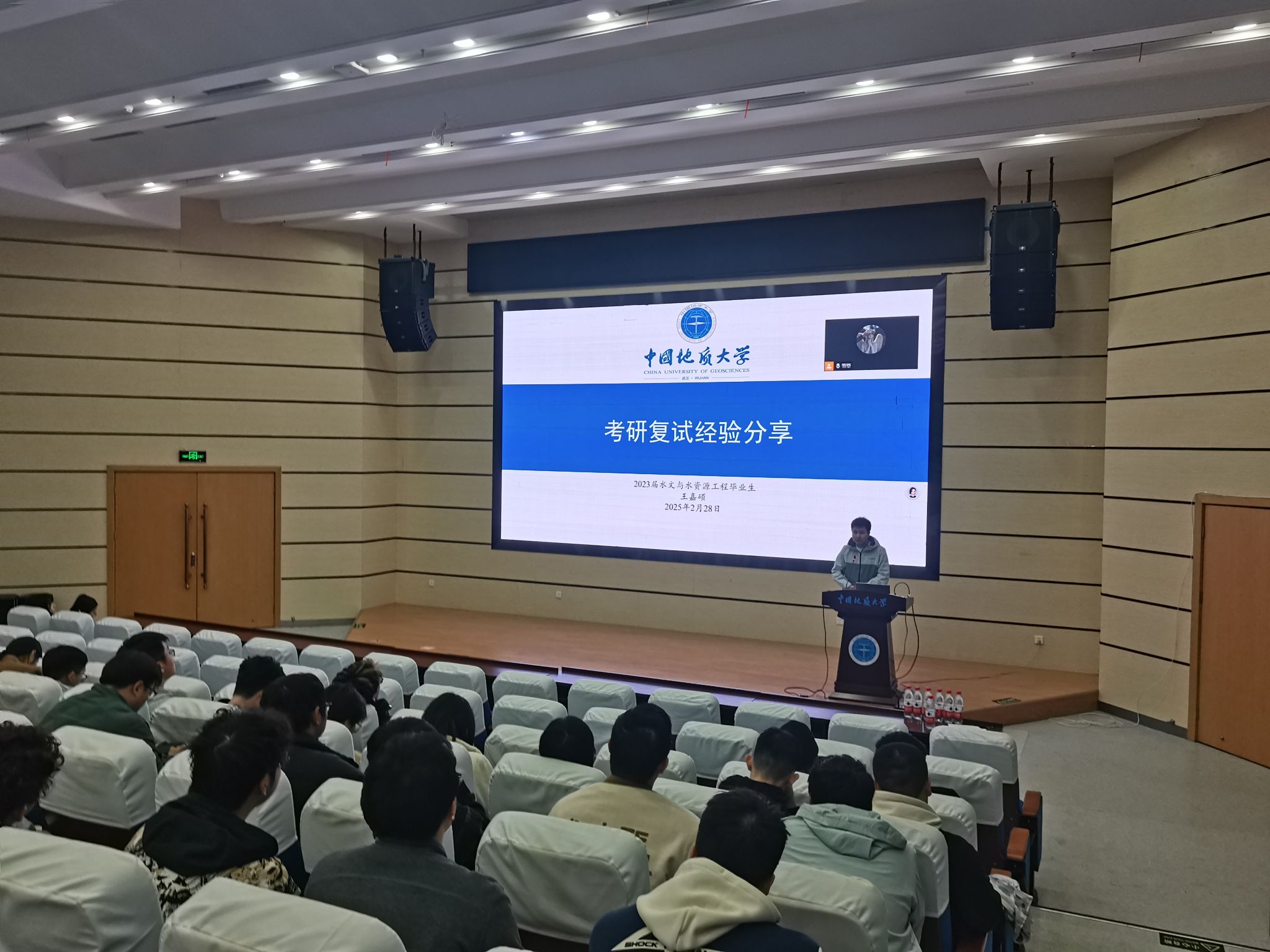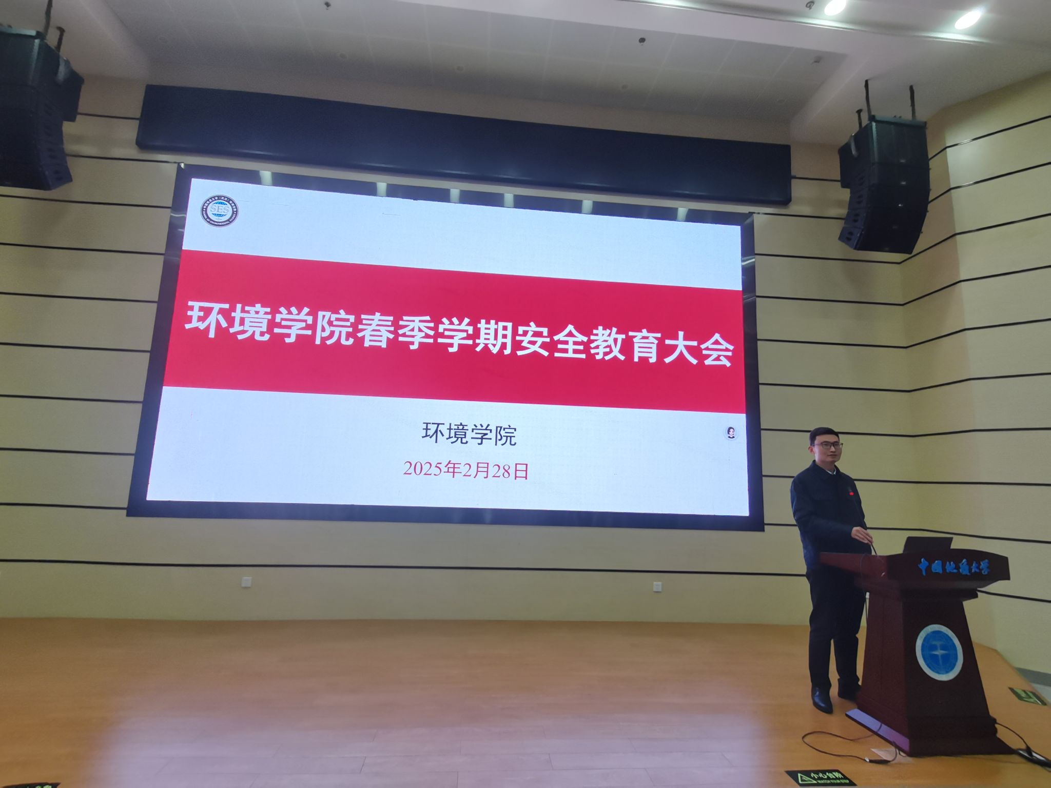 安全教育专题会议结束后,环境学院2025届本科生毕委会组织召开年级大会。海文考研副校长杨剑峰老师作考研复试和调剂培训,许经纬和王嘉硕分别分享考取外校和本校的复试经验,041211班李应保同学分享个人就业经验。随后,辅导员陈俊男围绕同学们提出的成长困惑以及关心的毕业就业等问题,及时解疑释惑、加强指导。