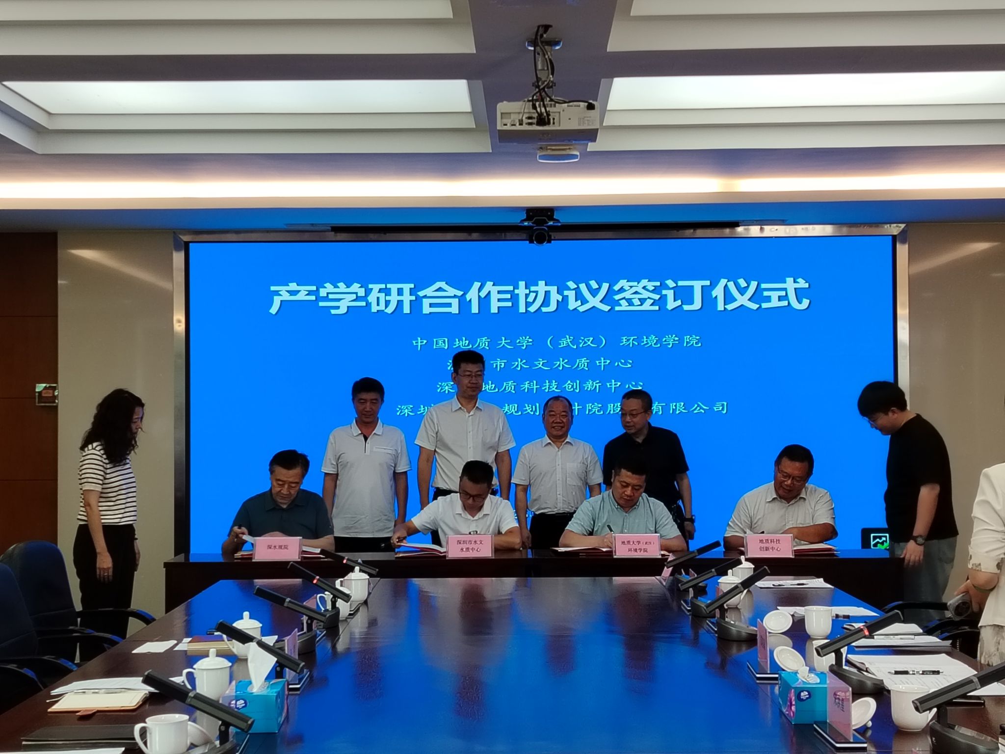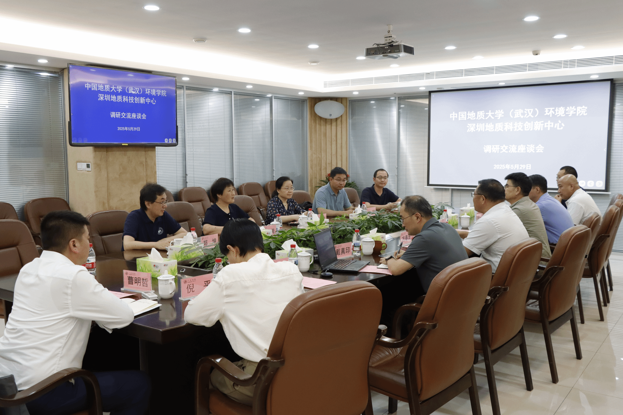 深圳市水文水质中心主任宋洪星,深圳地质科技创新中心主任张明,深圳市水务规划设计院股份有限公司党委副书记、副总经理陈宝京等分别介绍各自单位基本情况,交流相关业务领域的合作意向。