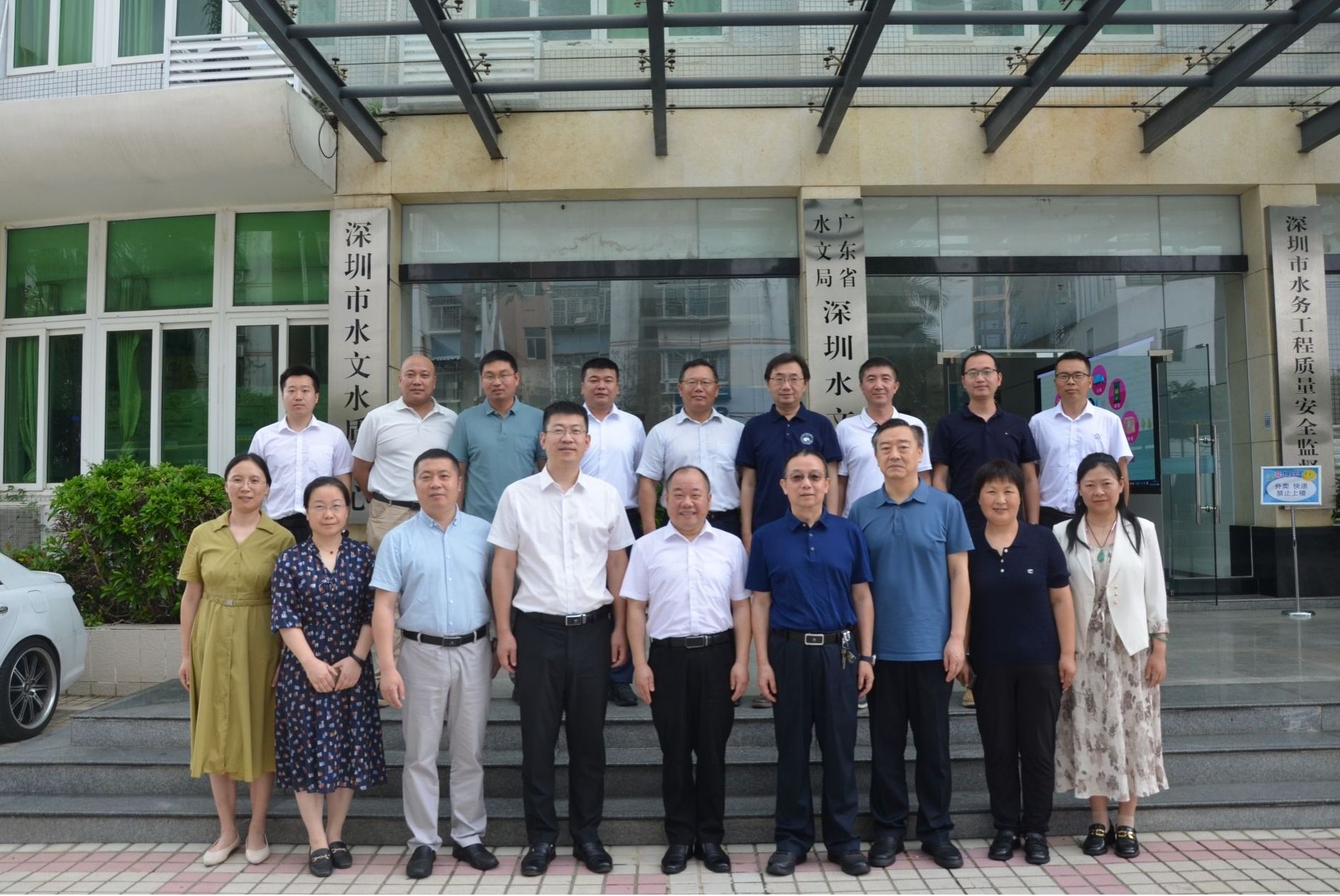 参会人员合影留念,随后实地考察西丽水库。