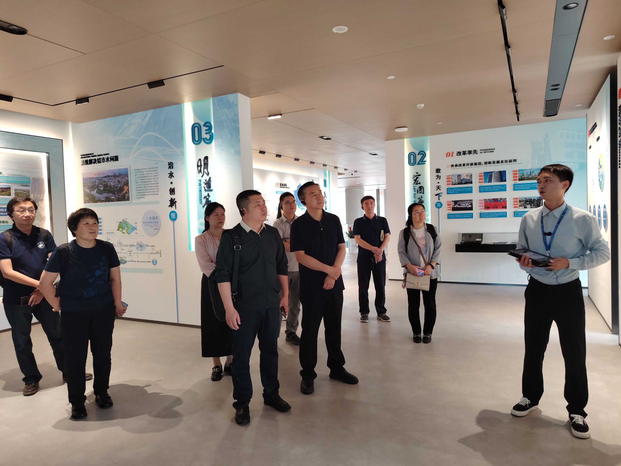 成建梅、邢新丽、江聪、郑坤、冉秀桃一行赴深圳地质科技创新中心进行调研交流,并实地考察梅林水厂和福田水质净化厂地下水监测站点等地。