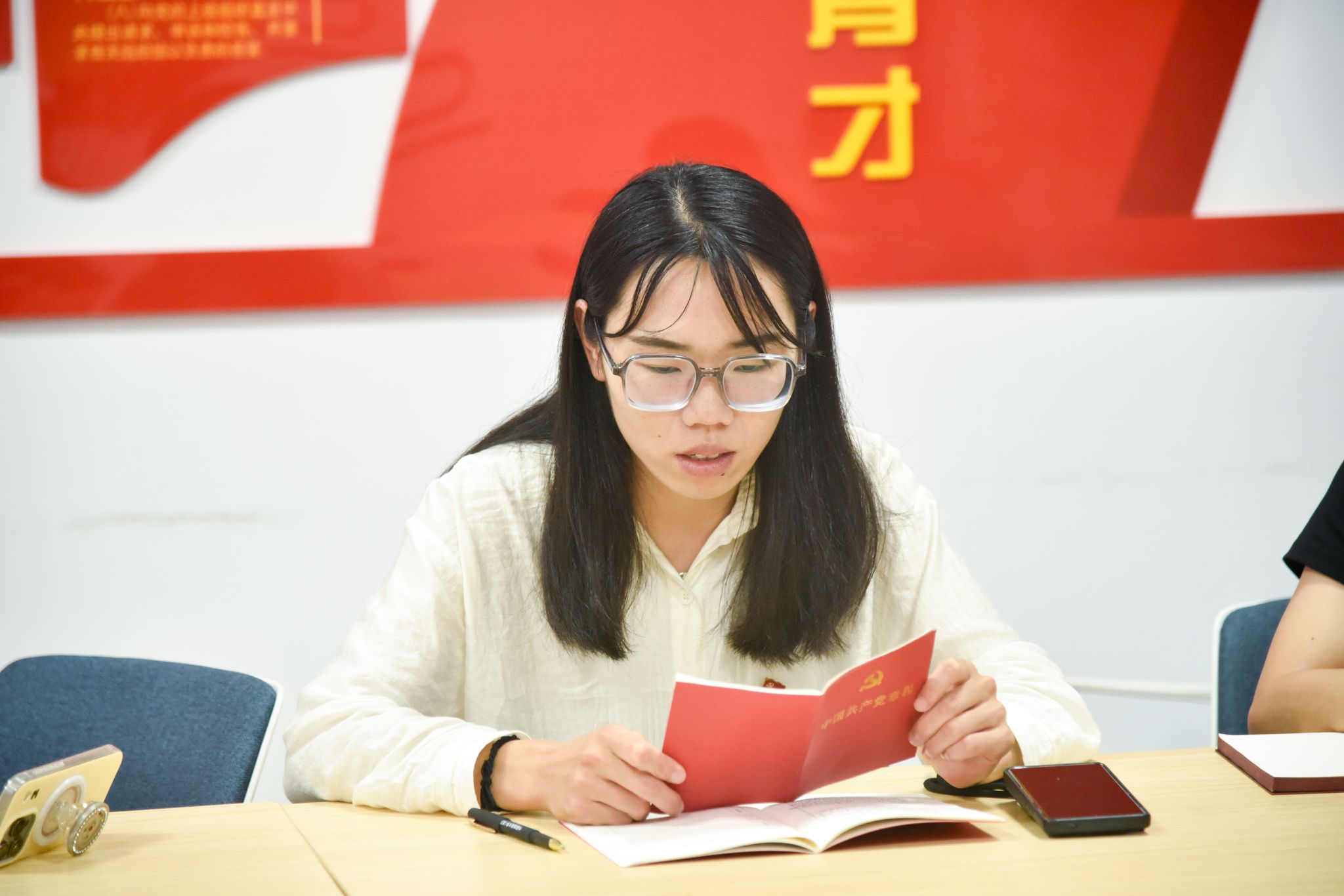 院直党支部有计划地组织诵读党章。王孟雪同志诵读党章的总纲部分内容。