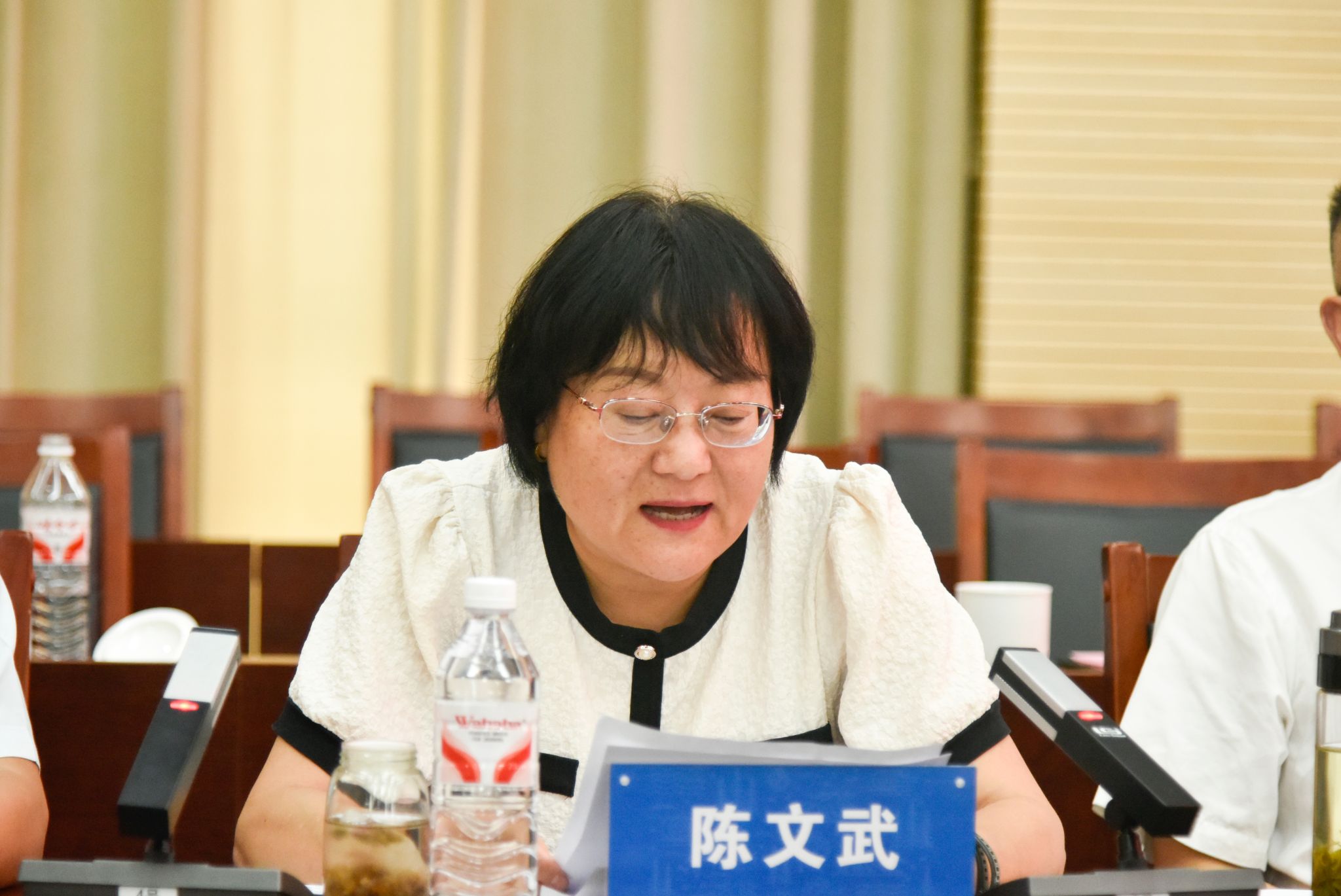 陈文武宣读学校党委任免文件,介绍到岗同志简况。她代表党委组织部对王海锋同志长期以来对学院党建工作、学生工作等的付出和贡献表示感谢,希望丁继国同志尽快熟悉岗位职责,确保各项工作平稳有序过渡。希望学院全体教职工全力支持和配合丁继国同志的工作,学院党委要主动担当作为,深入贯彻落实中央八项规定精神,扎实推进学校各项决策部署落地见效,并注重经验总结和成果推广,为学院高质量发展提供坚实保障。