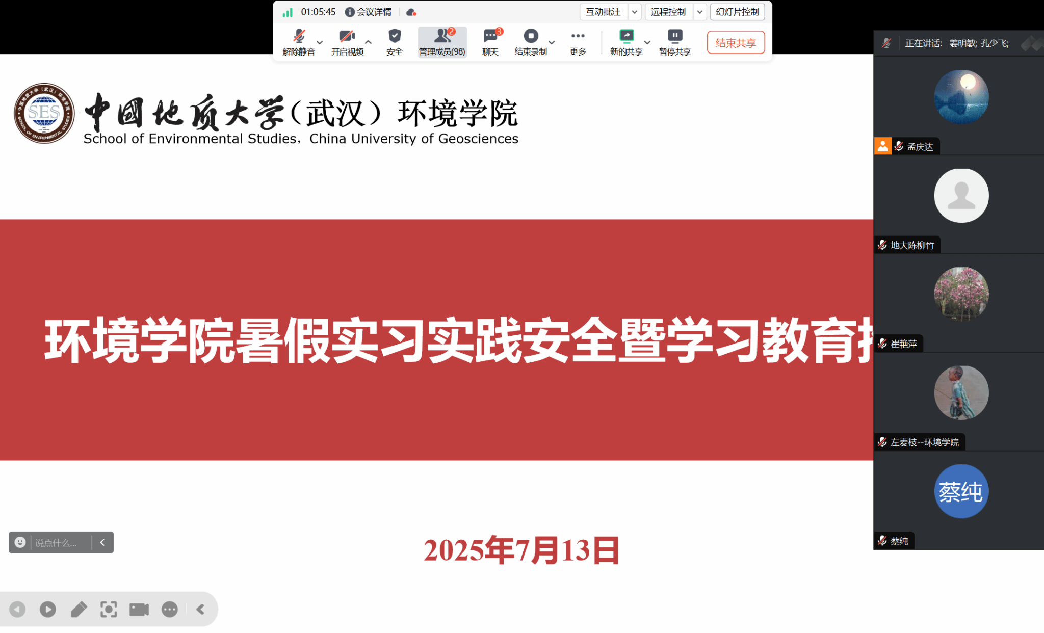 线上召开2025年暑期实习实践安全暨学习教育推进会,学院领导班子成员及全院教职工参会。副院长孔少飞主持会议。
