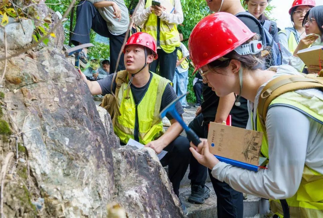 (武汉)师生在秭归县链子崖开展暑期地质实践教学。据《中国国家地理》报道,链子崖作为长江三峡地区重要地质遗迹,其岩层完整展现了新构造运动特征,被称作"地质博物馆"。师生们通过地质锤敲击辨音、盐酸滴试等方法,现场鉴别岩石种类与形成时间。该校二十年来持续在此开展实践教学,将陡峭崖壁转化为鲜活课堂。(视界网 周仕伟 摄)