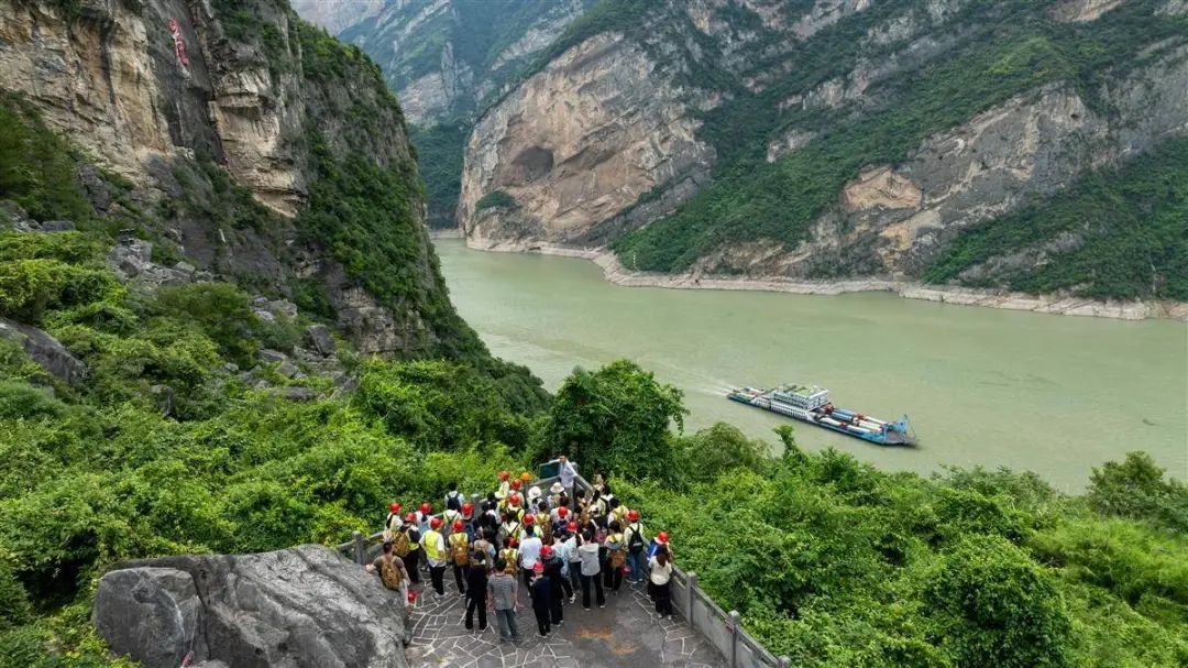 (武汉)师生在秭归县链子崖观测长江两岸岩层。