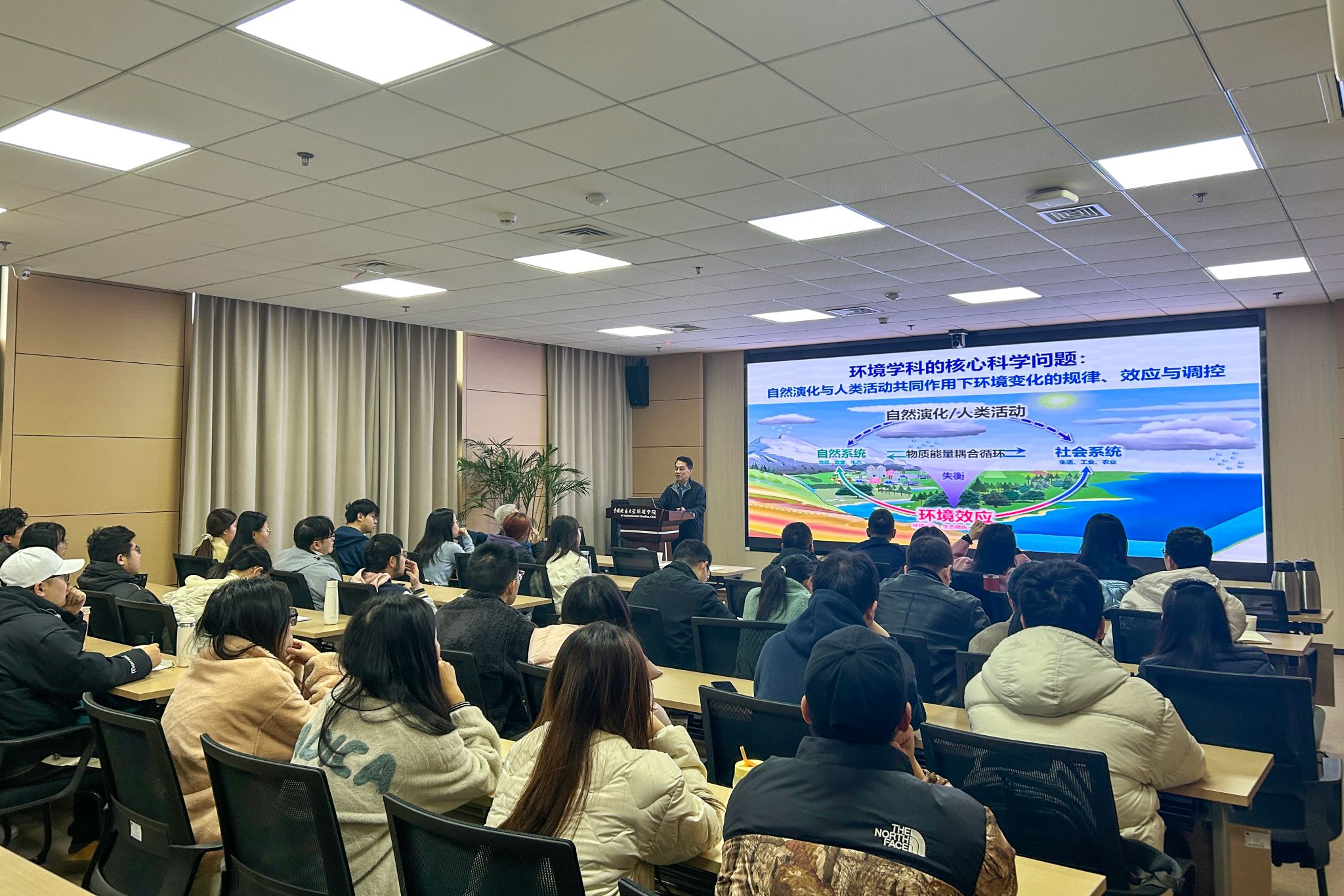 王焰新院士邀请,哈尔滨工业大学任南琪院士做客名家论坛,以“数字化赋能城市水系统绿色发展与生态安全”为题作学术报告,学院师生参加报告会。王焰新院士主持论坛报告会。