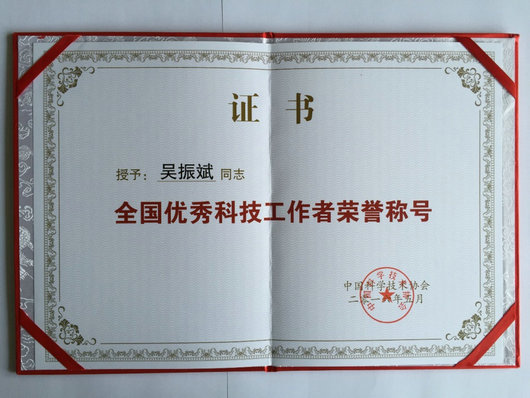 全国优秀科技工作者荣誉证书