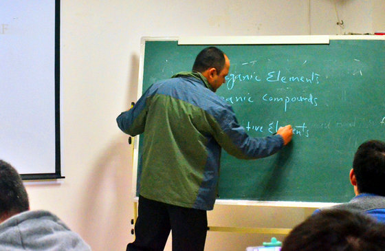 Dr. Ashraf教授简要讲解了什么是“形态”后,绘声绘色地讲起了化学形态和生物利用度的区别和具体内容,并用诙谐幽默的语言阐述了两者的重要性。他精彩的讲述使现场同学们听得入迷。对于同学们不太理解的部分专业词汇,Dr. Ashraf通过在黑板上进行板书帮助同学们理解,也会辅助一些肢体语言和简单的词汇进行深入浅出地阐释。