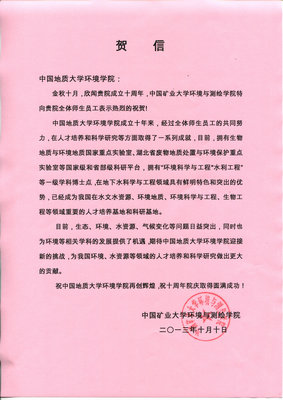 中国矿业大学环境与测绘学院发来院庆贺信