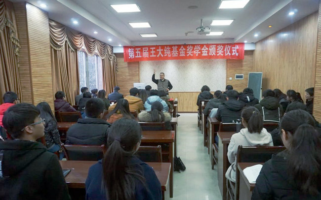 李门楼宣读了第五届王大纯基金奖学金表彰决定。他希望获得奖学金的学生常怀感恩之心、再接再厉,不断有新的进步和提高。同时,希望全体学生以获奖同学为榜样,努力学习,奋发向上,取得更加优异的成绩。