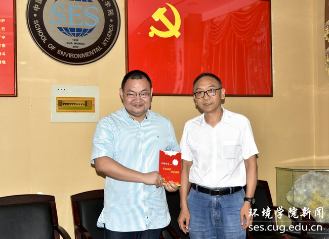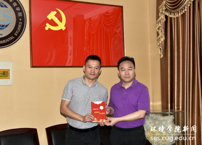 党委书记李素矿和院直党支部书记张学海分别为“政治生日”在六月份的补建伟、杨涛两位同志颁发“政治生日”纪念卡。