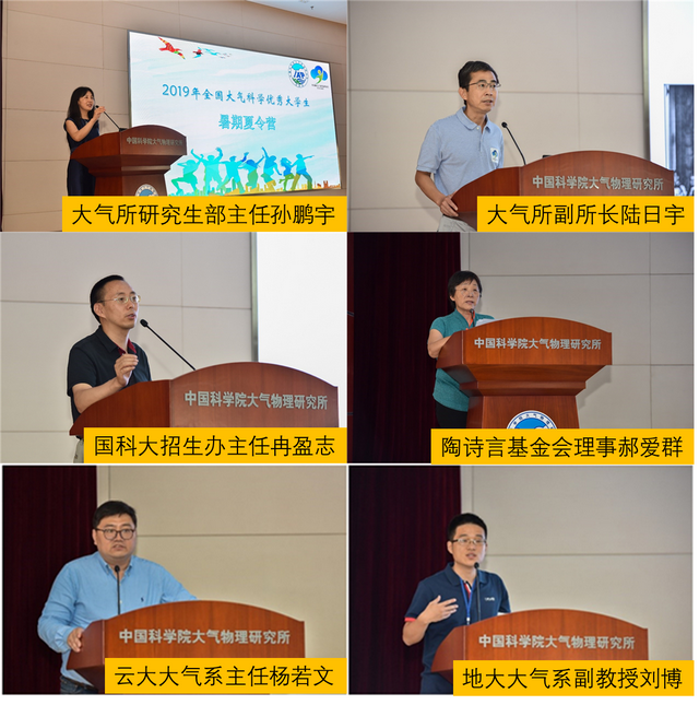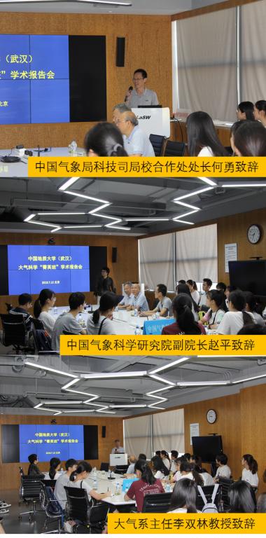 (武汉)大气科学系刘博等出席了开营仪式。开营仪式首先由各位领导和老师进行致辞。地大大气系刘博副教授在致辞中表达了对大气所的感谢,以及对菁英班学生的要求和期许。菁英班学生代表白思佳同学也在致辞中表达了对大气科学学科的热爱和对大气所的憧憬。