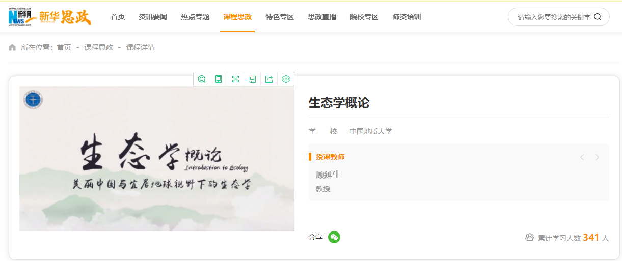 顾延生教授及其团队负责的《生态学概论》通识课课程思政案例上线新华网新华思政平台(//xhsz.news.cn/curriculum/detail/1183)。