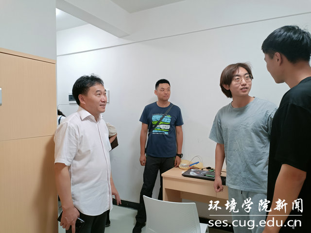 李素矿一行走访巴东实习基地学生宿舍看望学生,并与在巴东气象站实习的大气科学系师生交流,询问了解他们实习期间的学习和生活情况,叮嘱他们在实习中务必要做好防暑降温、疫情防护,确保安全第一。