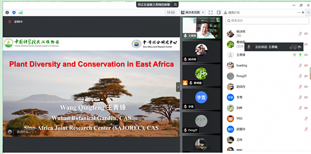 葛继稳教授邀请,中国科学院武汉植物园王青锋研究员线上以《东部非洲地区植物多样性与保护》为题作学术报告。百余名师生参与报告会。葛继稳教授主持报告会。
