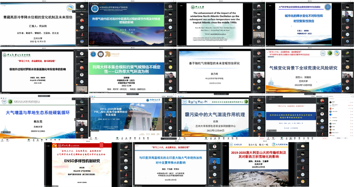 大气科学系教工党支部与兰州大学大气科学学院气候学系教工党支部、中山大学大气科学学院海洋气象(冰冻圈科学)系教工党支部联合开展“学习二十大,永远跟党走,奋进新征程”主题党日暨学术交流活动。