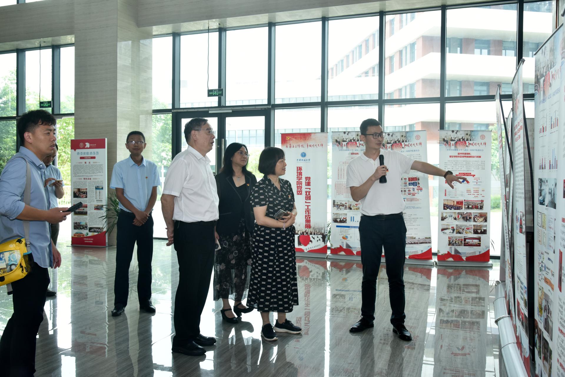 ,重点从谋划“红专能优”党建育人模式、实施“张国旗班”行动计划、涵养“1+6”资政育人氛围、建设“美丽中国”4+N课程思政、打造水-土-气-生-环跨学科育人范式等5个“双创”举措进行了党建“双创”工作分享。