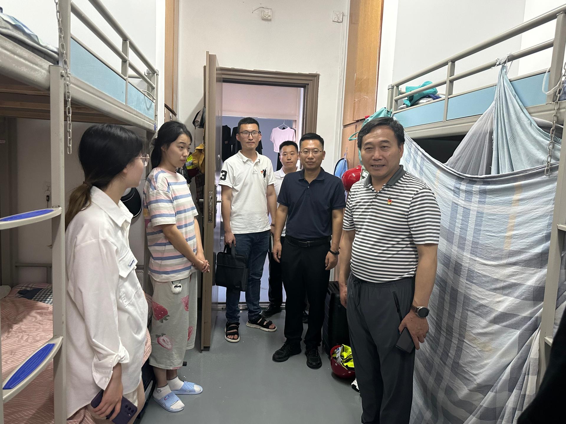 座谈会后,李素矿、史建波一行走进实验室和学生宿舍看望实习学生,与学生亲切交谈,问询学生野外实习期间的学习生活收获。他们叮嘱同学们要珍惜野外实习机会,在野外实习实践中提升理论认知水平、专业操作技能,做好防暑降温和安全防护。