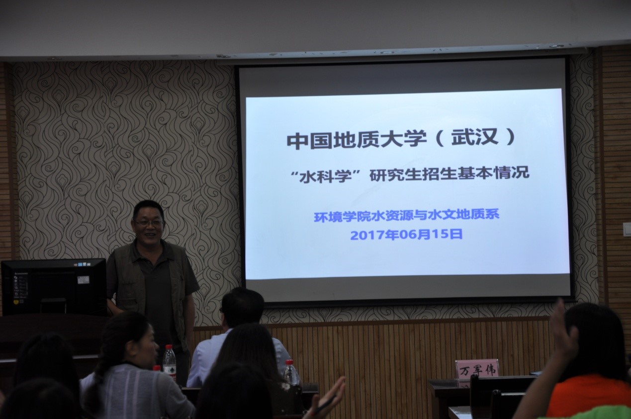 万军伟从学科历史改革、培养目标及标准、培养方向、师资队伍、科学研究、教学科研支撑、课堂教学、导师指导、学术交流、论文质量和就业发展等方面介绍了水资源与水文地质系基本情况。