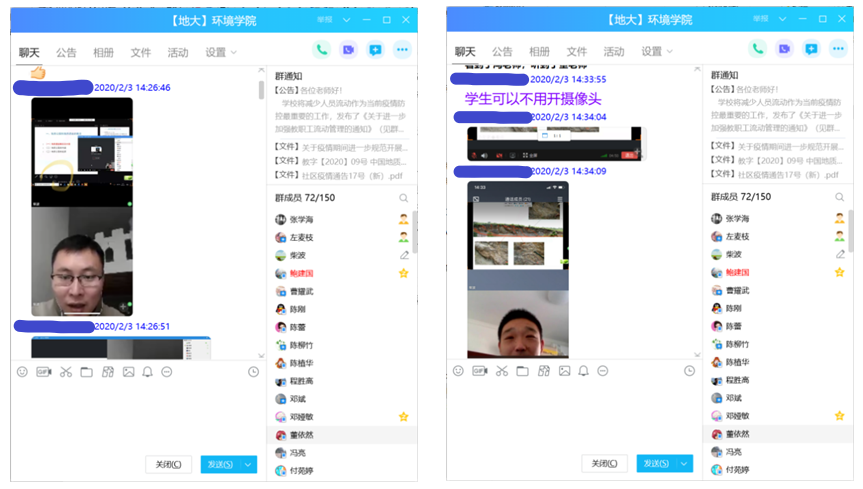 2月10日,按照教学计划学院全部课程正常开课,院领导、系室主任、教学督导、辅导员、班主任和教学团队成员加入在线教学群,协助教师收集教学反馈意见、发现在线教学问题。同时,发挥班、团委员和学生党员的组织带头作用,号召全体学生积极投入在线学习,协助教师维持课内外教学纪律。网络育人体系基本成型,实现了在线传授知识技能,关心学生思想动态和居家心理辅导的多重功能。