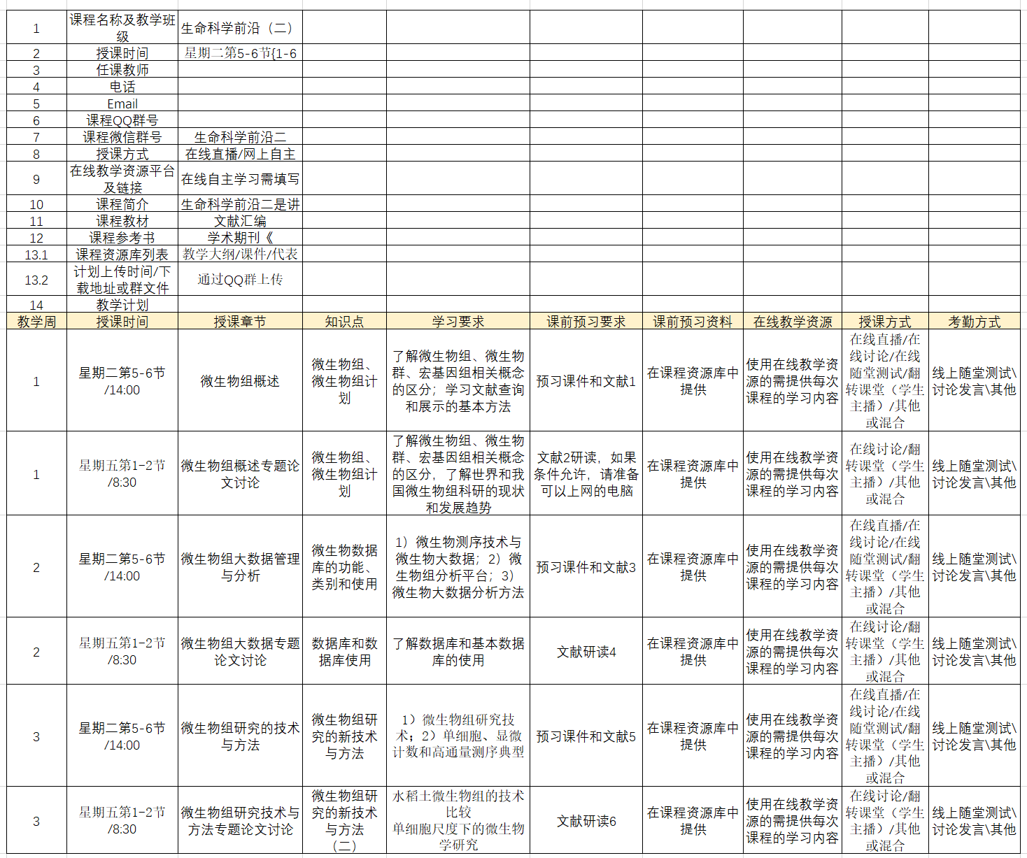 图1-3在线授课计划表