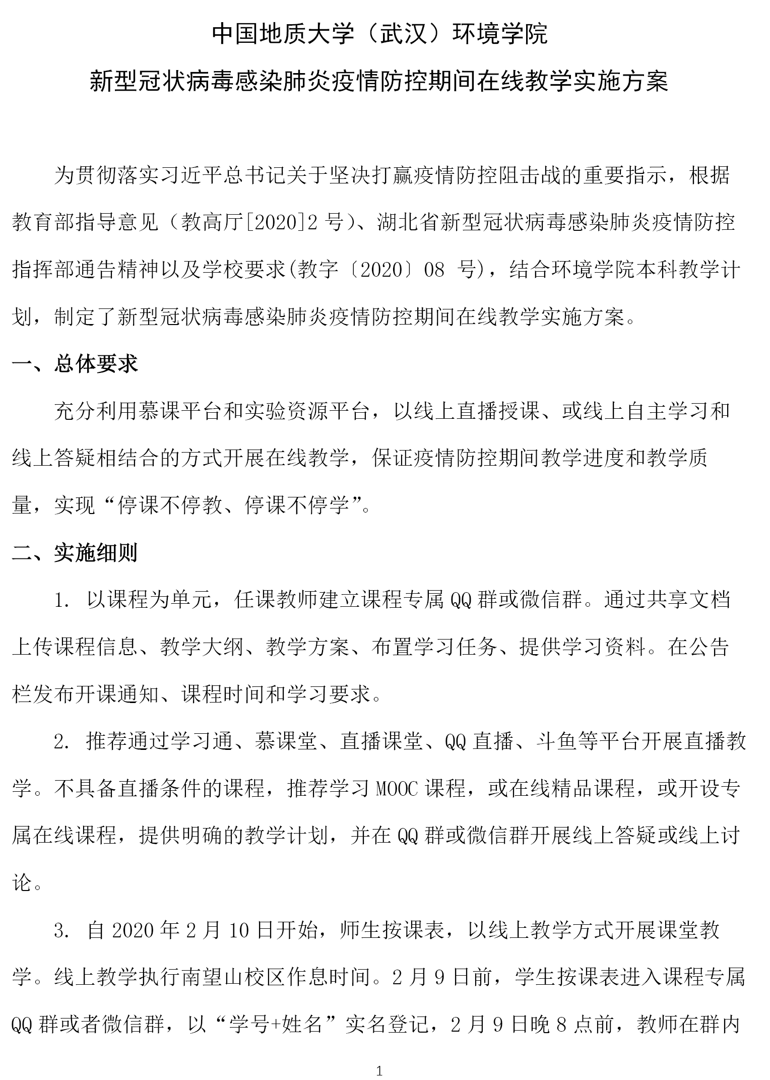 图1-4学院疫情防控期间在线教学实施方案