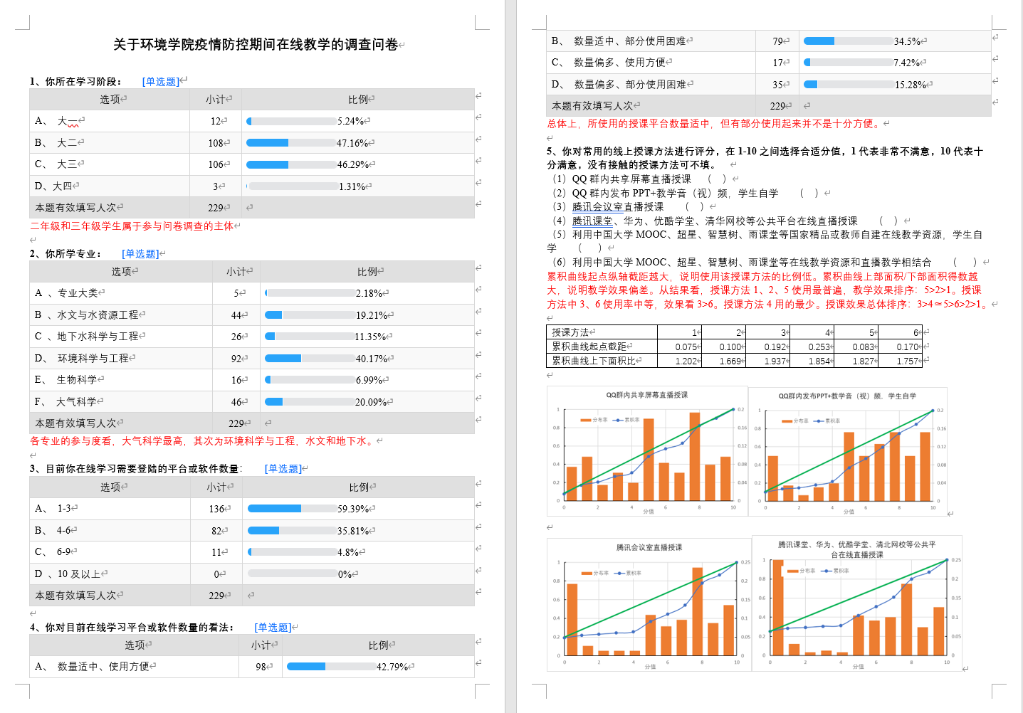 图1-5在线教学问卷调查反馈表
