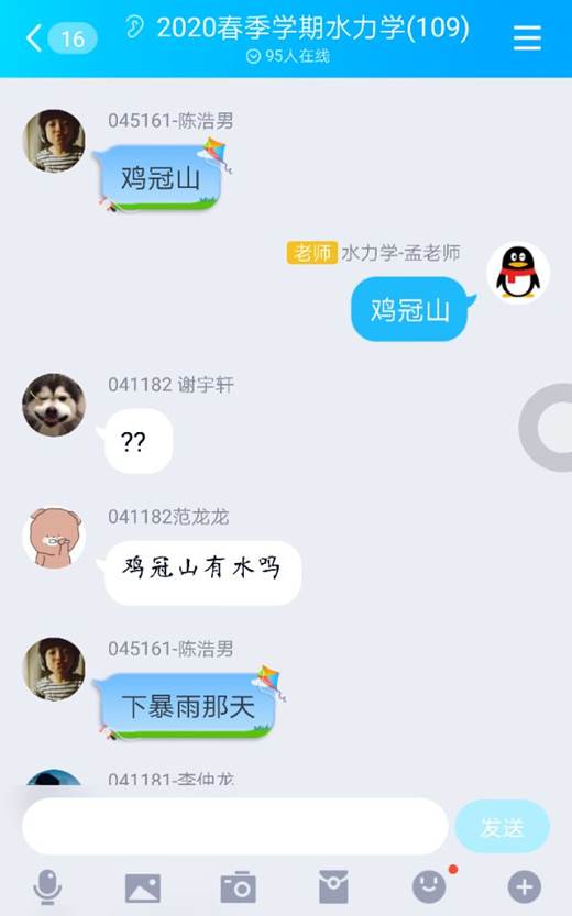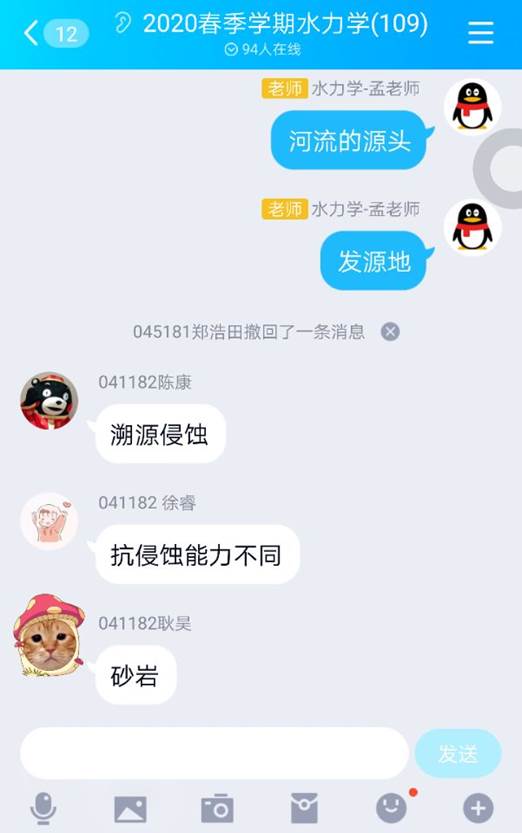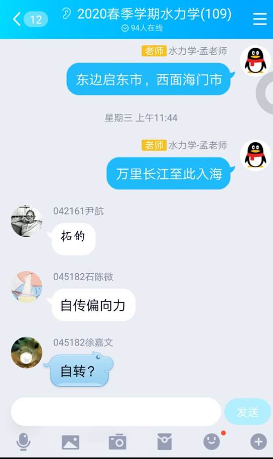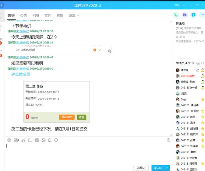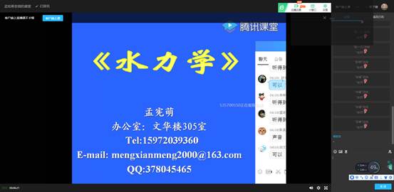 水文与水资源工程、地下水科学与工程、环境工程专业的一门重要的专业基础课,本学期共有7个班,200余名学生参加学习。在全国人民共同抗击新冠肺炎疫情的关键时刻,在举国上下抗击疫情的特殊时期,《流体力学(水力学)》课程团队积极响应教育部“停课不停学”的号召,迅速参与“地大一平三端”的学习培训,认真研究《流体力学(水力学)》课程教学特点、网络教学资源的状况,确定采用“以学为主、以导为辅”的线上、线下混合式教学方式,即首先由教师引导课程教学目标和知识要求——学生直接利用网上水力学精品教学资源自学——教师线上课堂串联与质疑各章节知识要点、网上直播——学生+教师在线讨论释疑——学生线下练习巩固——教师考核及反馈。