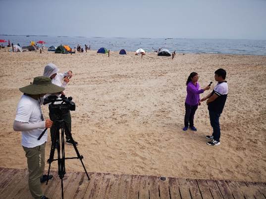 北戴河实习基地的新闻播报员 联合天津地质调查中心在海上勘测船拍摄