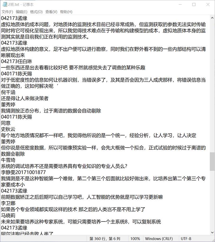 一节课180条交流与讨论的记录文本