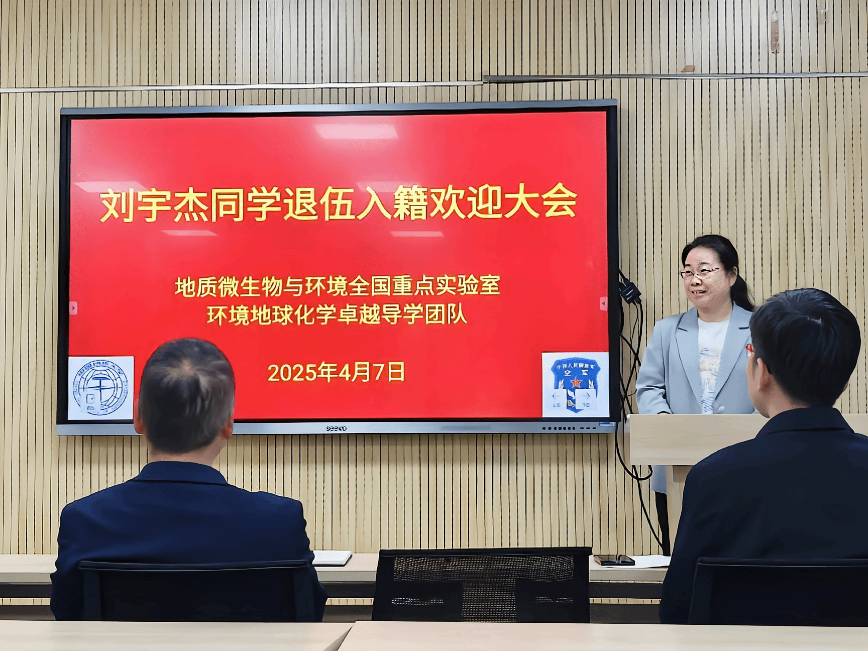 通讯员晋冰洁 摄影侯碧茹 编辑王孟雪)4月7日,环境地球化学卓越导学团队刘宇杰同学退伍入籍欢迎大会在地质微生物与环境全国重点实验室B106会议室举行。党委研究生工作部部长许德华、地质微生物与环境全国重点实验室办公室主任侯建湘、环境地球化学卓越导学团队师生与研究生会代表参会。欢迎会由导师祁士华教授主持。