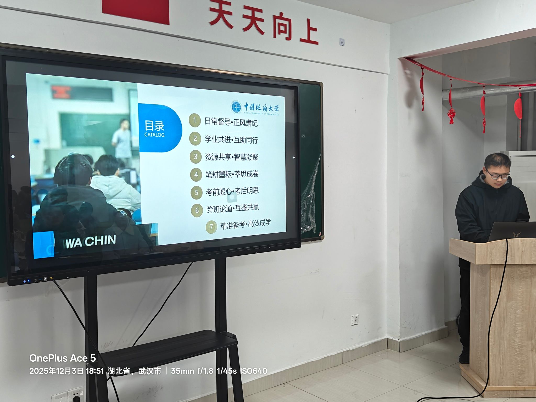 (通讯员董玉 摄影2025级年级工作组 编辑申墁烨)为深入推进2025级本科班级学风建设,凝聚学风建设共识,2025级年级工作组于12月3日晚在南望山校区63栋103举行2025级本科学风示范班级创建答辩会暨学风建设推进会。2025级专兼职辅导员、年级工作组全体成员、各班学习委员、“最美示范笔记”和“最美笔记”获奖同学以及“早操流动红旗”班级代表共同参会。年级工作组副组长盖博元主持会议。