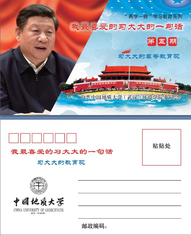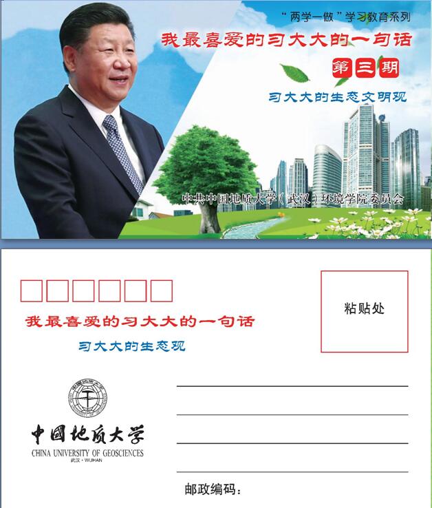 陆续开展了第三期、第四期、第五期“我最喜爱的习大大的一句话”系列明信片设计征集活动,形成了“习大大的生态文明观”、“习大大的青年寄语”、“习大大的高等教育观”三套特色明信片。通过“学习之路”活动,环境青年在“学思践悟” 中深刻领会习总书记重要思想的精神实质,并内化为自身成长成才的基本遵循和动力源泉,以青春之我,担时代重托。
