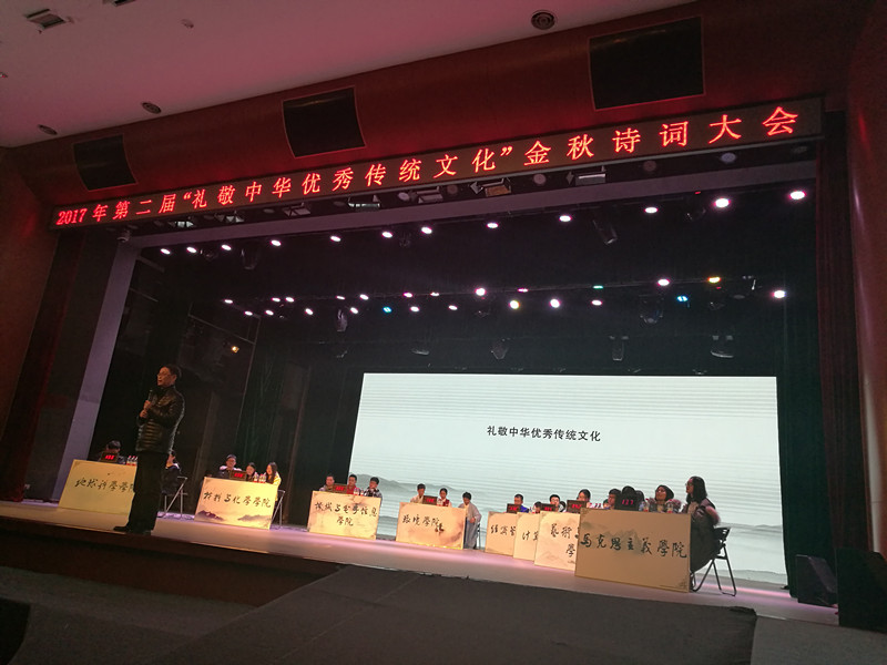 2017年12月8日,由党委学生工作部、党委研究生工作部、教务处、校团委联合举办的第二届“礼敬中华优秀传统文化”金秋诗词大会在弘毅堂顺利举行。日本av片av 付昱钢、刘恩俊、李凡三位同学精心准备,经笔试,小试牛刀初登场、百尺竿头斗志昂、精彩飞花我最强等四个环节等环节后,从全校20余个单位派出的参赛队伍中脱颖而出,荣获第二名。