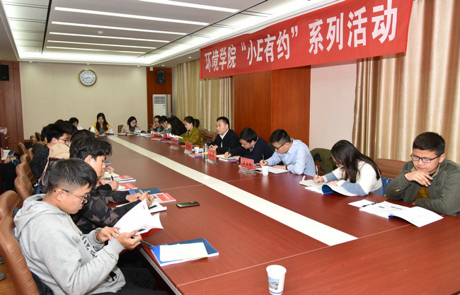 (通讯员:孟国强 臧文赫  摄影、编辑:张学海)3月22日下午,日本av片 第二期“小E有约”在丹桂苑212室举行。日本av片 党委书记李素矿、党委副书记朱继、院直党支部书记张学海、辅导员孟国强,各学生党支部书记,党徽照我行工作中心成员参加活动。