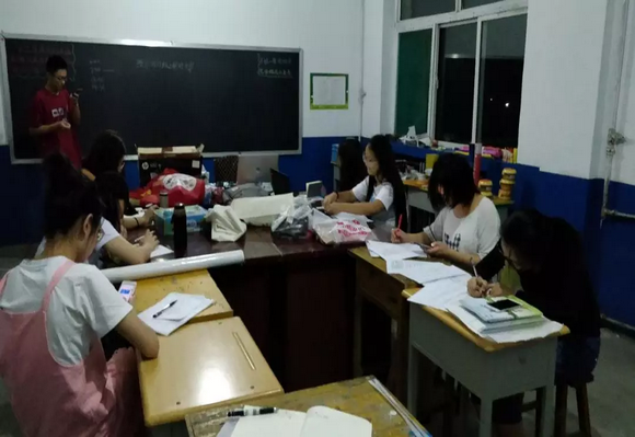 在我们大部队到达庙坪之后,按原计划分为了一队和二队。两支队伍在仓促的午饭之后,开始打理学校教室,协调教学资源,清点教学物资,使教学空间资源分布与事先确定的生源情况相匹配。打理完毕后,即使遇到停电等突发情况,我们依然根据原先计划,按部就班地完成了准备工作。最后队员们利用旅途剩余的食物解决了晚饭问题,在应急灯下继续开展了开学前的筹备会议。