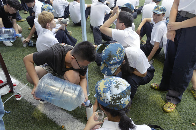 “对于这样的军训强度还算适应,教官严肃之余的幽默可以适当缓和军训的疲乏,”042182班的刘健说道,“虽然天气炎热,但环境学校的同学们几乎都在咬牙坚持,我也感到非常骄傲。”认真训练,为的是教官的付出与督促,更是为了上好大学第一课,不想让自己的大学生活留下遗憾。骄阳下,狂风中,我们的新生训练无阻。参差不齐的排面渐渐变得整齐了,纷乱的脚步声越来越坚定。