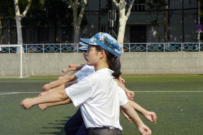 同学们认真学习领会教官的示范动作