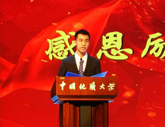 大气科学菁英班。很荣幸能代表校长奖学金获得者在此发言。首先请允许我向为我们提供良好成长环境的学校以及辛勤培养我们的老师致以最诚挚的感谢。付出总有回报,奖学金是对我们学习的鼓舞和激励,获奖离不开地大严明学风的引领,感同身受的是环保事业中砥砺前行的责任使命。
