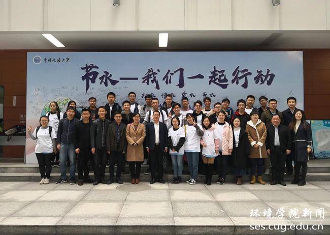 “3.22世界水日”暨第三十二届“中国水周”节水宣传活动启动仪式,学院党委副书记姜明敏、水文地质系近10名教师、辅导员王碧,孟国强,李平,兼职辅导员陈杰以及张国旗班学生等49名师生代表参加了此次仪式。